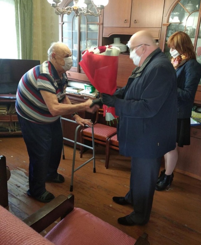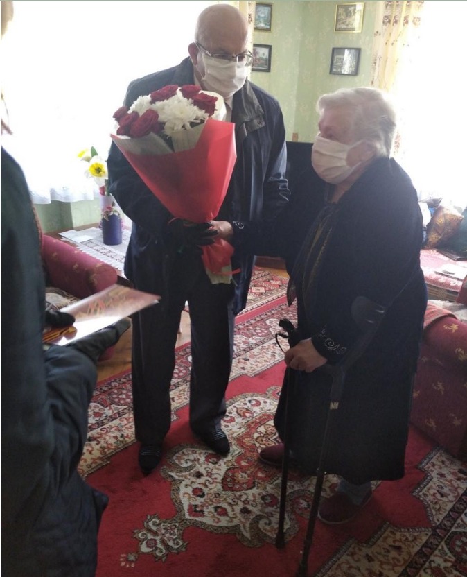 На фото заместитель генерального директора ОАО Белресурсы» – управляющая компания холдинга «Белресурсы» Гадад Гаджиевич Галимов поздравляет ветеранов Людмилу Петровну Величко и Аркадия Самуиловича Галесника.